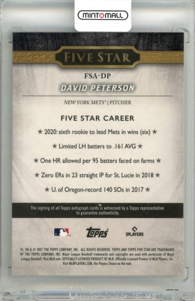 2021 Topps Five Star David Peterson #FSA-DP Base Autograph Card Mets