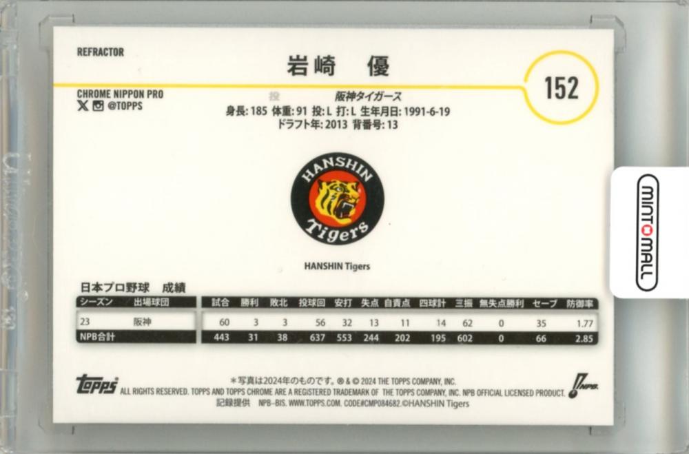 2025 TOPPS CHROME NPB 岩崎優 #152 Base Orange Refractor Parallel【03/25】 阪神