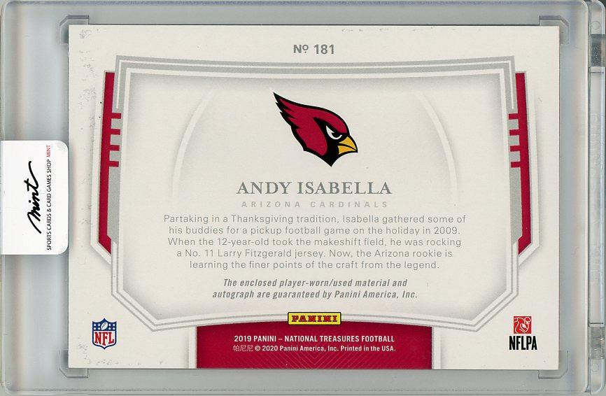 【状態若干難あり】2019 PANINI National Treasures Andy Isabella Autograph & Player Worn Material (RC)【13/99】