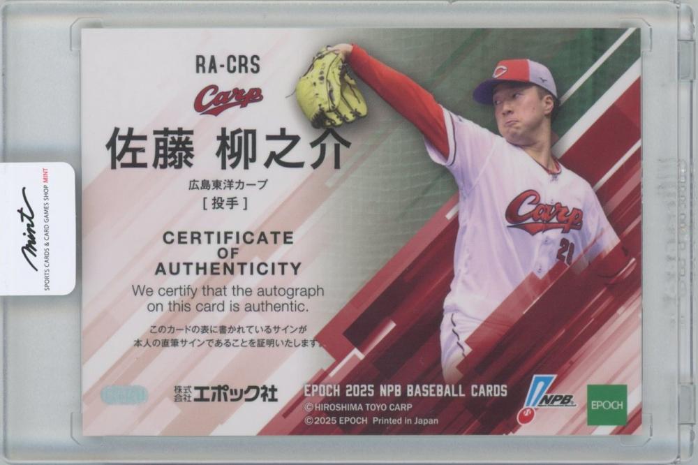 2025 EPOCH NPBプロ野球カード / 佐藤柳之介(広島東洋カープ) 金版ROOKIE AUTOGRAPH直筆サインカード 【2/9】