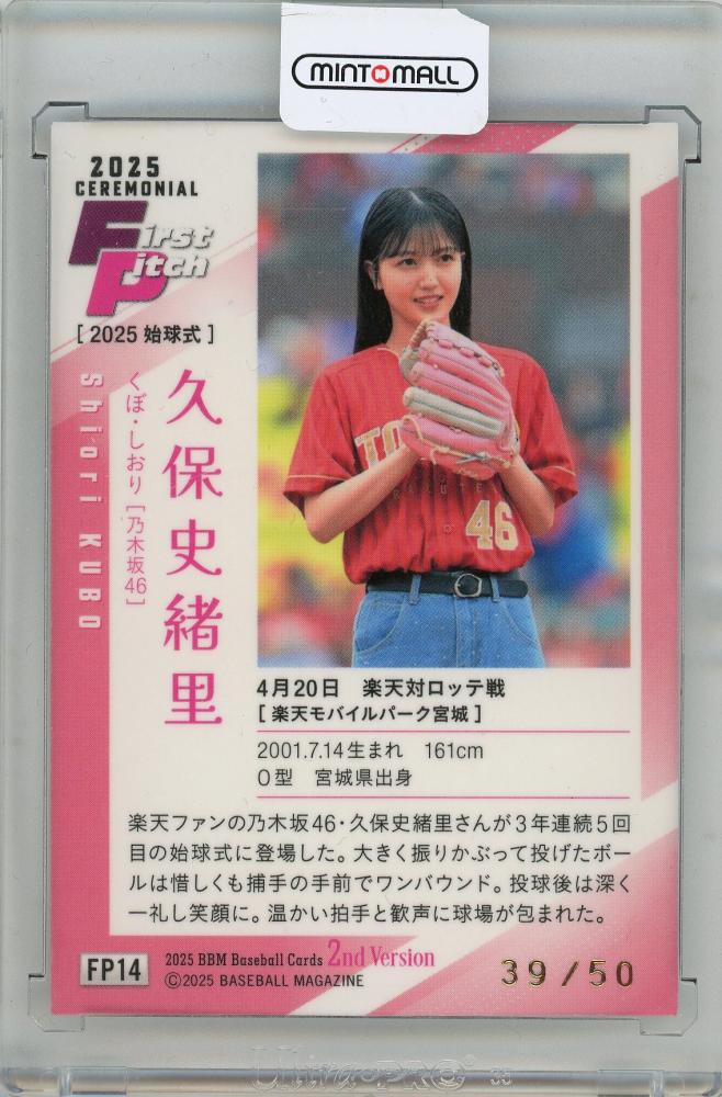 BBM 2025 2nd 久保史緒里 始球式カード 39/50