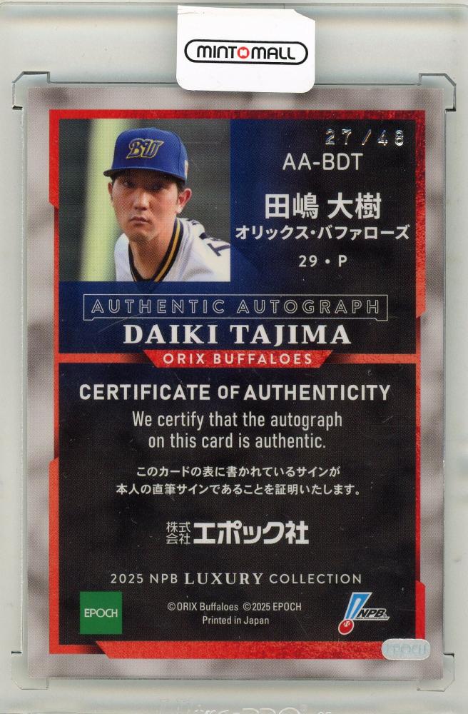 EPOCH 2025 NPBプロ野球カード LUXURY COLLECTION 田嶋大樹 直筆サインカード 27/48
