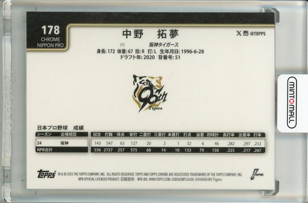 2025 TOPPS NPB CHROME 中野拓夢 Green Shimmer Refractors【94/99】 阪神タイガース