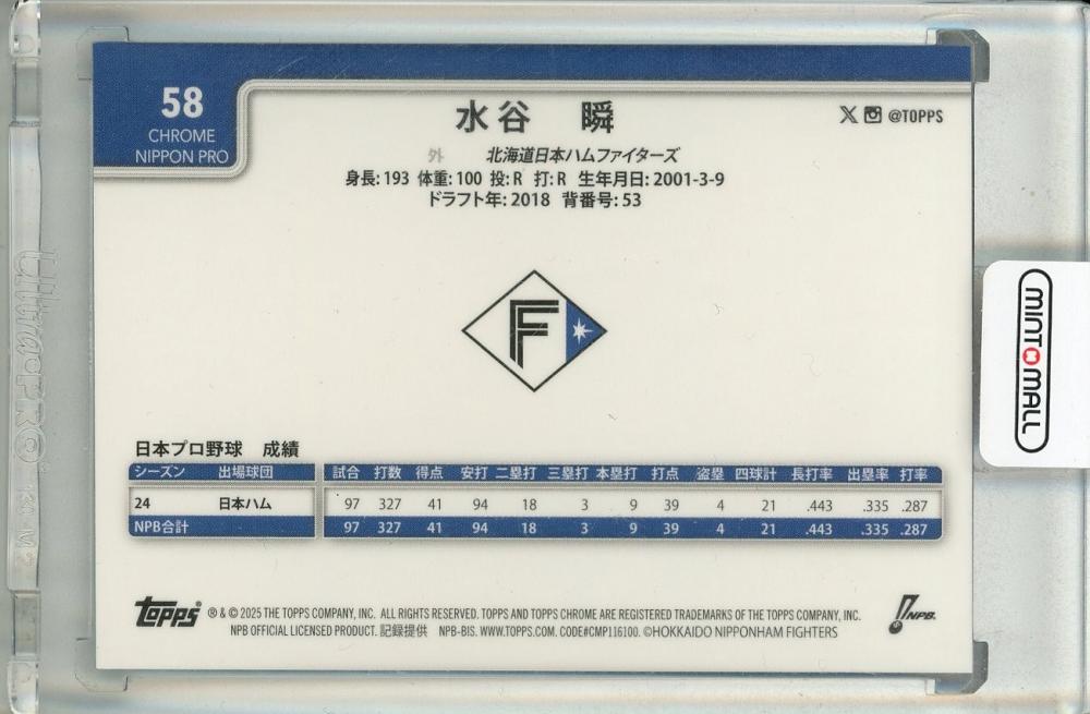 2025 TOPPS NPB CHROME 水谷瞬 Blue Refractors【030/150】 北海道日本ハムファイターズ