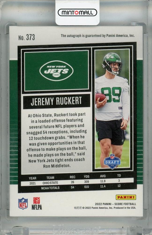 2022 Panini Score Jeremy Ruckert Base Rookies Signatures #373 RC Auto New York Jets