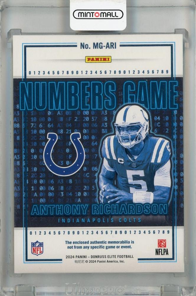 2024 Panini Donruss Elite Anthony Richardson Numbers Game Jerseys #10 ※白かけあり【491/500】 Indianapolis Colts