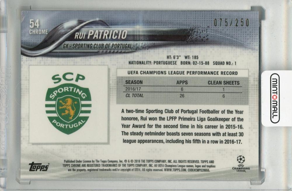 2017-18 TOPPS Chrome UEFA Champions League Rui Patricio Purple Refractors #54【075/250】《やや難あり 左上にダメージ有り》 Sporting CP