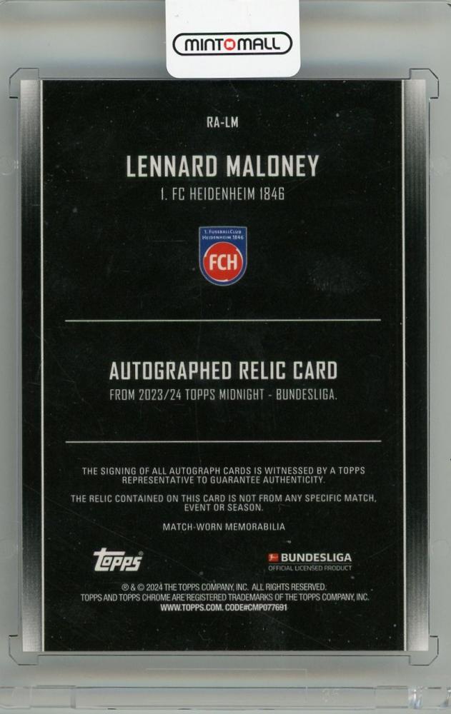 2023-24 TOPPS Midnight Bundesliga Lennard Maloney Relic Autographs Moonrise #RALM【23/25】 1.FC Heidenheim 1846