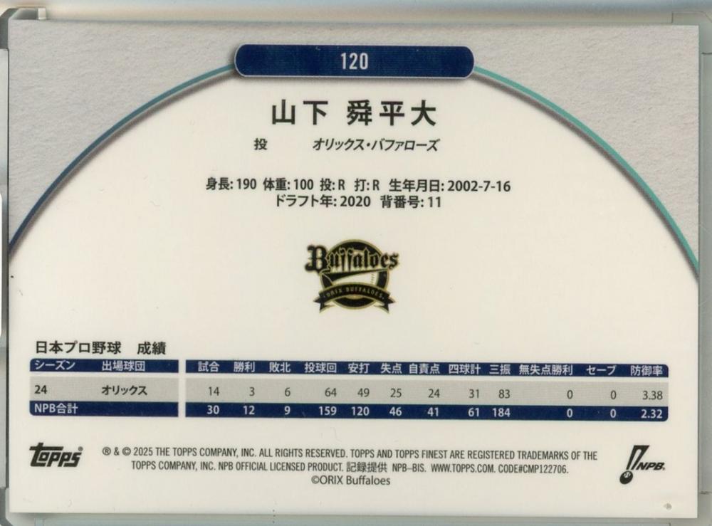 2025 Topps Finest NPB 山下舜平大 アクアパラレル【152/199】 オリックスバファローズ