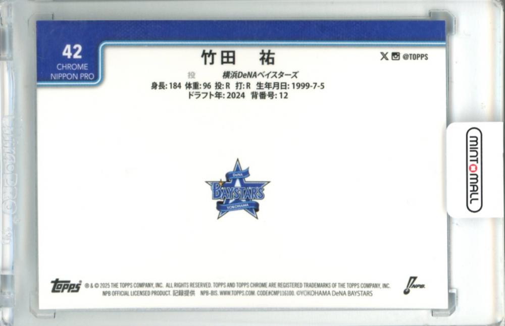 2025 TOPPS CHROME NPB 竹田祐 #42 Base Card Blue Refractor Parallel【110/150】 横浜