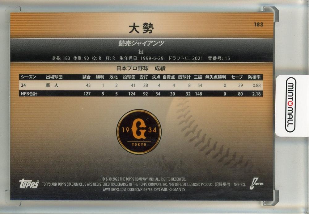 2025 Topps Stadium Club NPB 大勢 ゴルドー【25/50】 読売ジャイアンツ