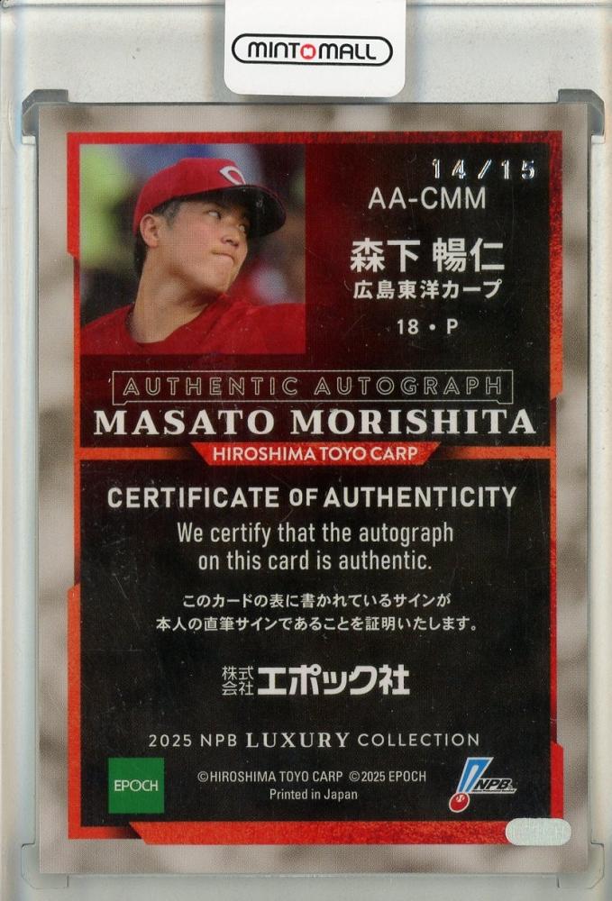 2025 Epoch Luxury 森下暢仁 Authentic Autograph 直筆サインカード【14/15】 広島カープ