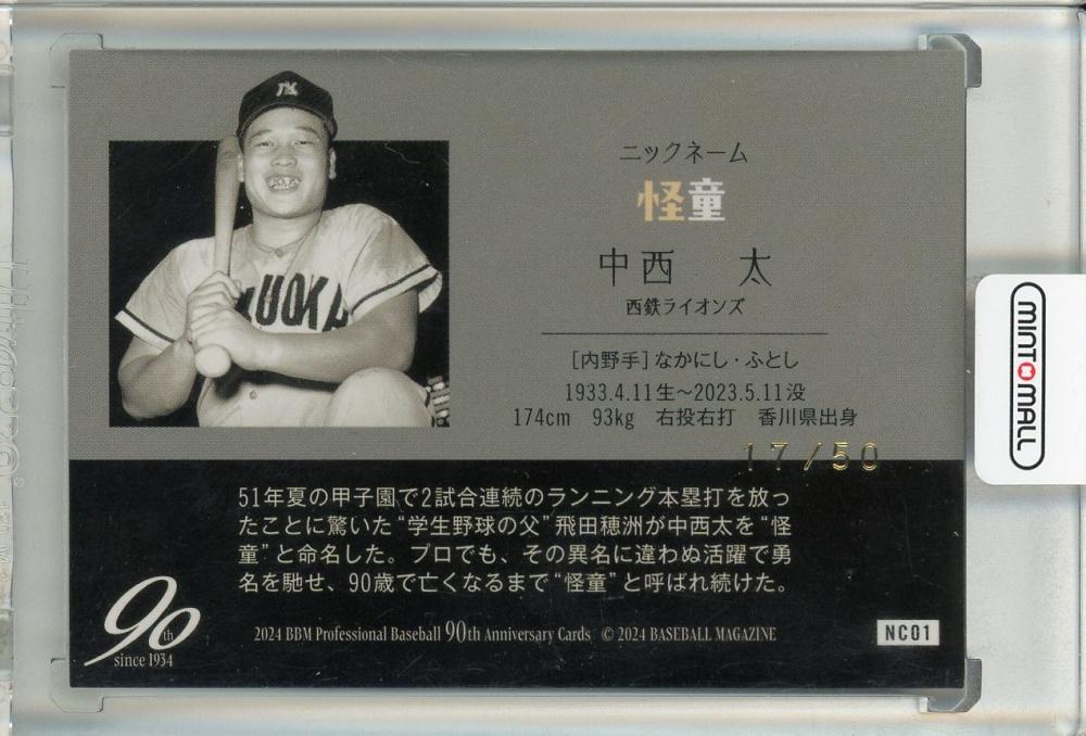 2024 BBMプロ野球90周年 中西太 ニックネーム ホロブルー箔サイン版【17/50】 西武ライオンズ