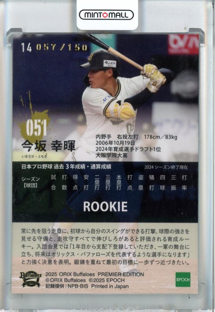 2025 Orix Buffaloes Premier Edition 今坂 幸暉 REGULAR FOIL SIGNATURE (SILVER)【057/150】 オリックス・バファローズ