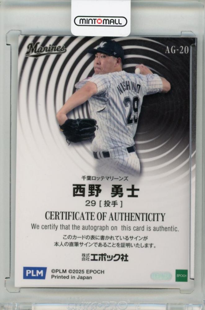 2025 EPOCH パシフィック・リーグ プレミアエディション 西野勇士 #AG-20 AUTHENTIC AUTOGRAPH 直筆サインカード 金箔版【11/25】 ロッテ
