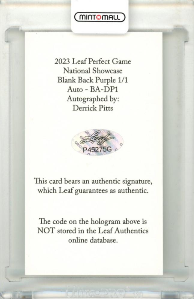 2023 Perfect Game National Showcase Derrick Pitts #BA-DP1 Autograph Blank Back Purple Parallel【1/1】《1of1》