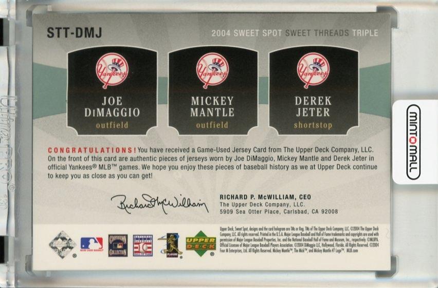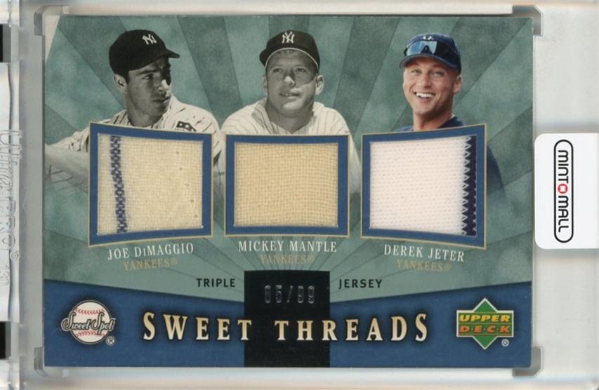 2004 Upper Deck Sweet Spot Joe DiMaggio / Mickey Mantle / Derek Jeter Sweet Threads Triple #STTDMJ【85/99】