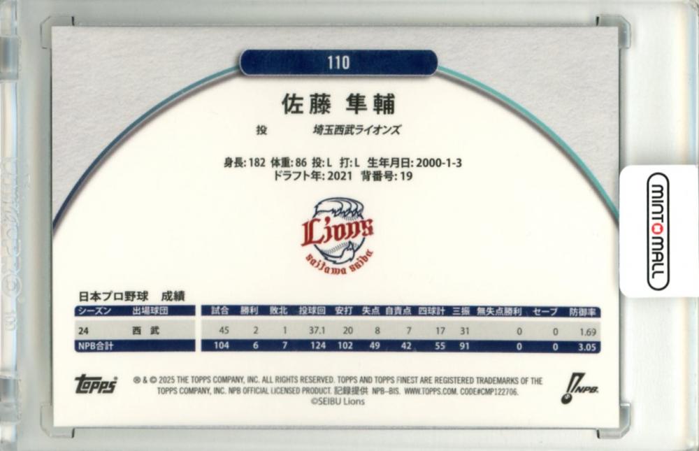 2025 TOPPS NPB FINEST 佐藤隼輔 #110 Base Yellow Refractor Parallel【38/75】 西武