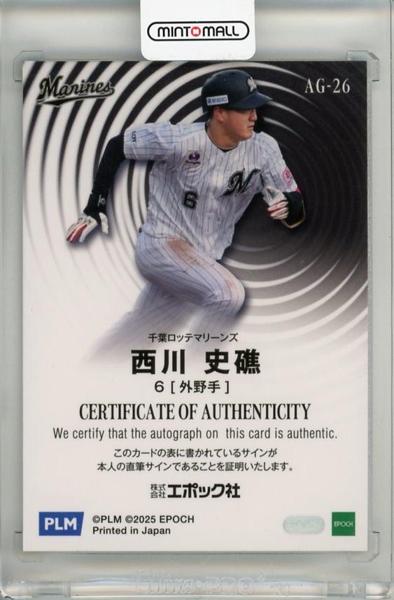 EPOCH パ・リーグ プレミアエディション 2025 西川史礁 直筆サインカード【01/22】 千葉ロッテマリーンズ