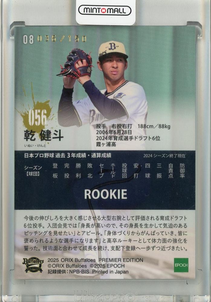 2025 Orix Buffaloes Premier Edition 乾健斗 REGULAR FOIL SIGNATURE (SILVER)【036/150】 オリックス・バファローズ