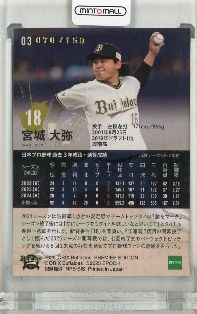 2025 Orix Buffaloes Premier Edition 宮城大弥 REGULAR FOIL SIGNATURE (SILVER)【070/150】 オリックス・バファローズ
