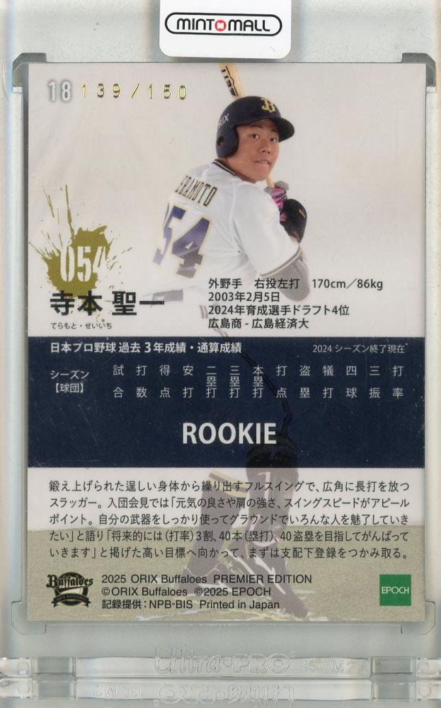 2025 Orix Buffaloes Premier Edition 寺本聖一 REGULAR FOIL SIGNATURE (SILVER)【139/150】 オリックス・バファローズ