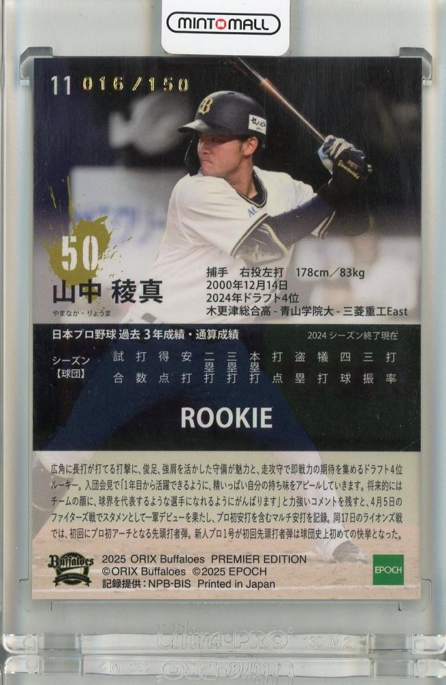 2025 Orix Buffaloes Premier Edition 山中稜真 REGULAR FOIL SIGNATURE (SILVER)【016/150】 オリックス・バファローズ