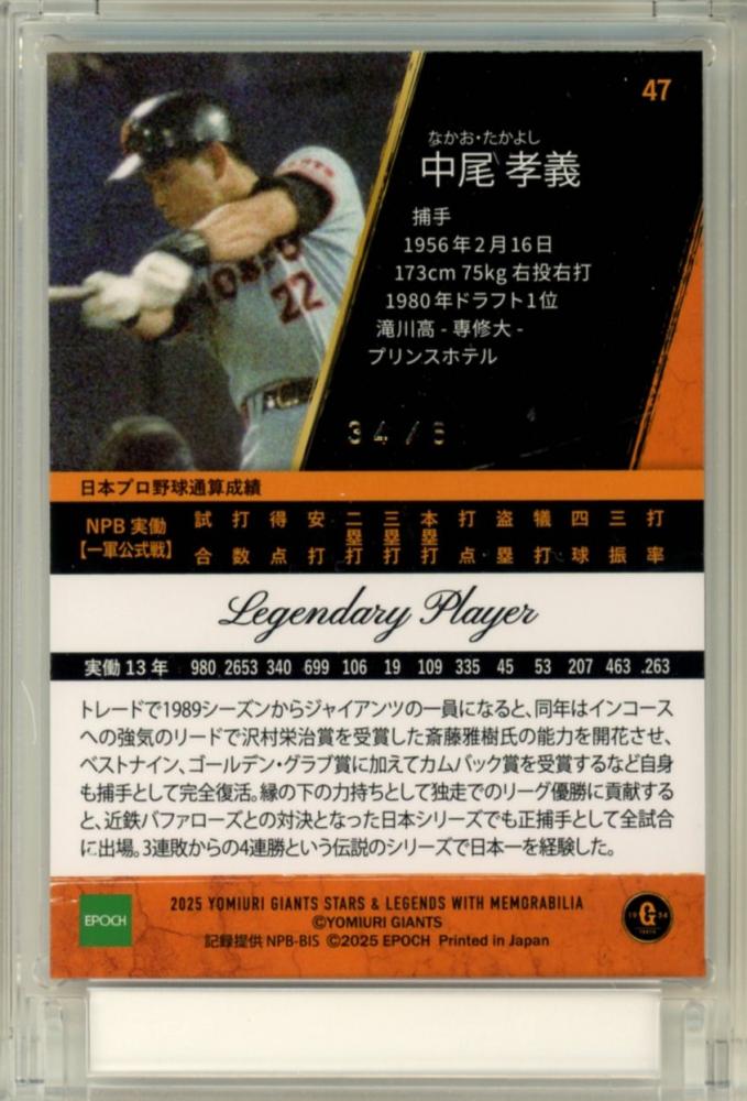2025 EPOCH 読売ジャイアンツ STARS&LEGENDS With MEMORABILIA 中尾孝義 #47 レギュラーカード【34/61】