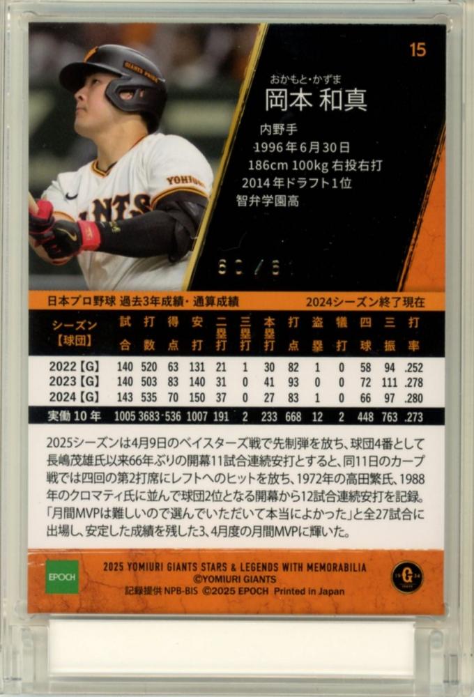 2025 EPOCH 読売ジャイアンツ STARS&LEGENDS With MEMORABILIA 岡本和真 #15 レギュラーカード【60/61】