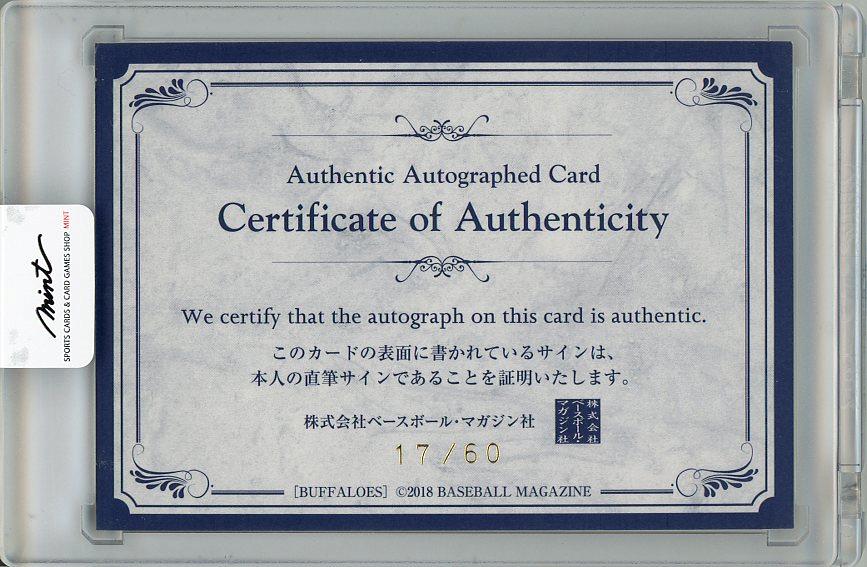 2018 BBM オリックス・バファローズ 宮崎祐樹 直筆サインカード【17/60】