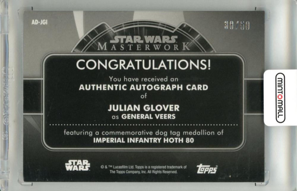 2020 Topps Star Wars Masterwork Julian Glover As General Veers #AD-JGI Commemorative Dog Tag Autograph Purple Parallel【38/50】