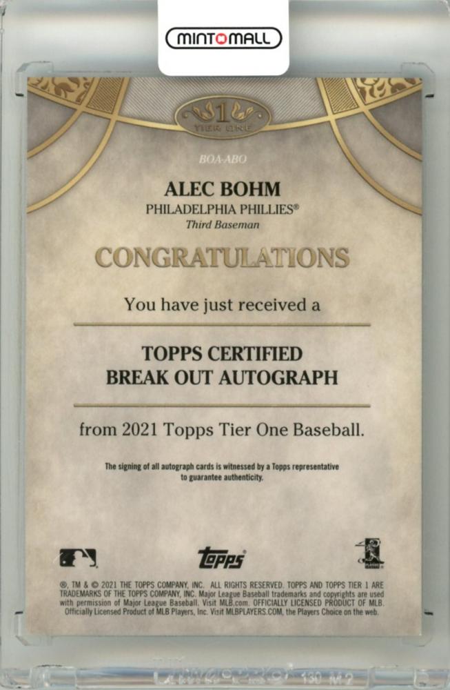 2021 Topps Tier One Alec Bohm #BOA-ABO Break Out Autograph Card【003/150】 Phillies