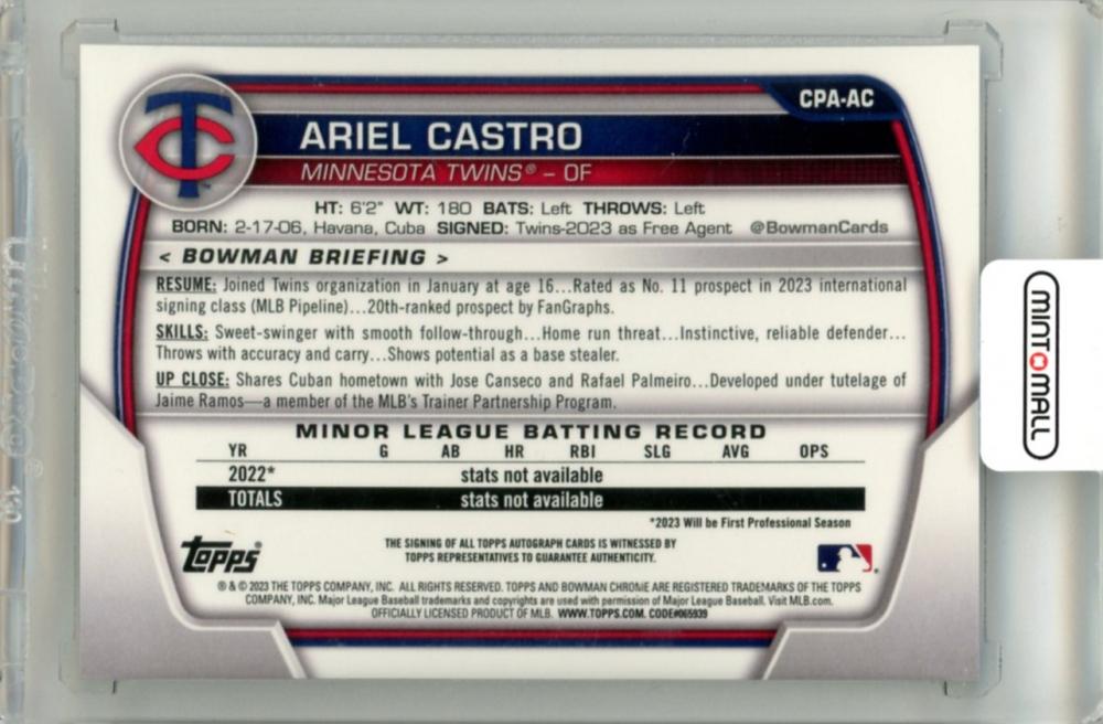 2023 Topps Bowman Ariel Castro #CPA-AC Chrome Prospect Autograph Twins