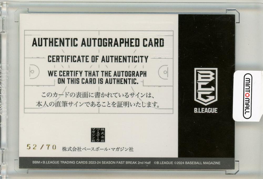 2025 BBM × B.LEAGUE 2023-24 SEASON FAST BREAK 2nd Half 関野剛平 直筆サインカード 52/70