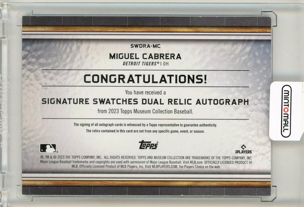 2023 Topps Museum Collection Miguel Cabrera Autograph / Relic 50/50