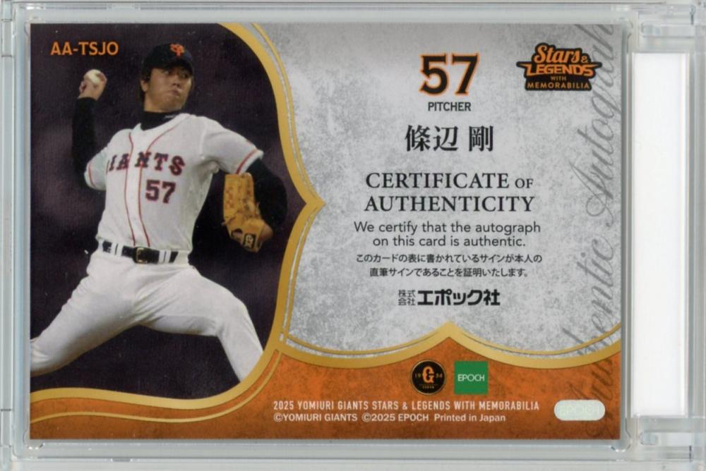 2025 EPOCH 読売ジャイアンツ STARS & LEGENDS with MEMORABILIA 條辺剛 直筆サインカード【16/75】 読売ジャイアンツ