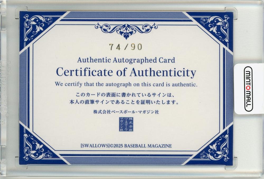 2025 BBM 東京ヤクルトスワローズ 小澤怜史 直筆サインカード【74/90】
