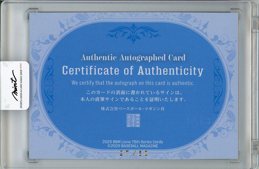 2025 BBM ライオンズ75周年シリーズ Vol.3 松井稼頭央 直筆サインカード【27/60】
