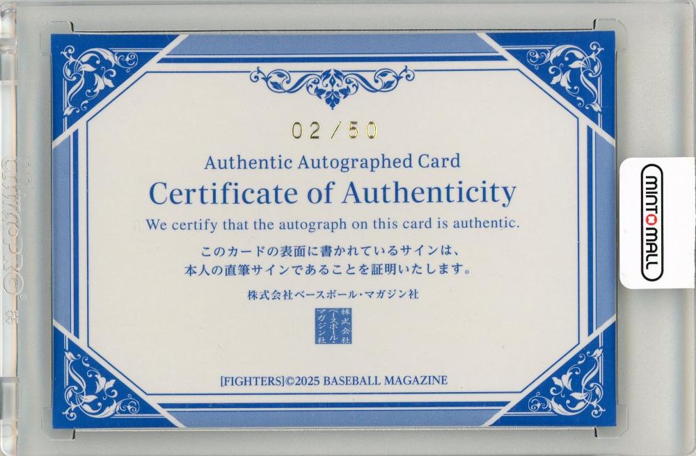 2025 BBM 北海道日本ハムファイターズ 五十幡 亮汰 直筆サインカード【02/50】