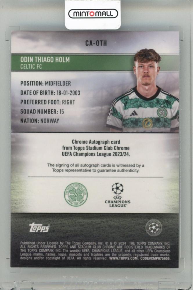 2023-24 Topps Stadium Club Chrome UEFA Champions League soccer Odin Thiago Holm RC/Chrome Autographs/#CA-OTH Celtic FC