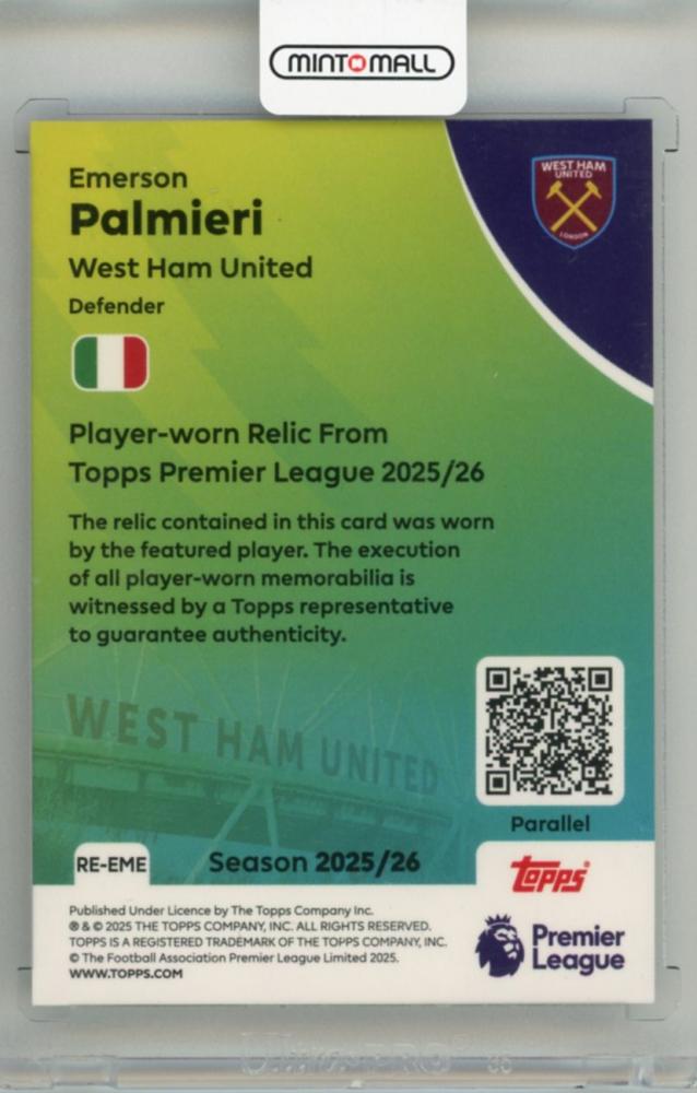 2025-26 TOPPS English Premier League Emerson Palmieri Premier Relics Purple Rainbow Foil #REEME【096/199】 West Ham United