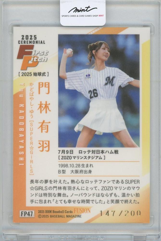 2025 BBM FUSION / 門林有羽(SUPER☆GiRLS) ⾦紙版始球式カード 【147/200】