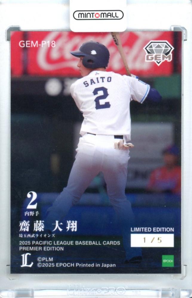 2025 EPOCH パシフィック・リーグ プレミアエディション 齋藤大翔 #GEM-P18 GEM ブラック版【1/5】《1stナンバー》 西武