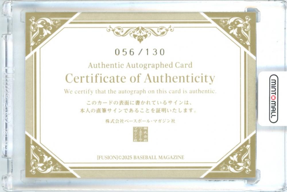 2025 BBM FUSION 仲三河優太 直筆サインカード チームパック版【056/130】 西武