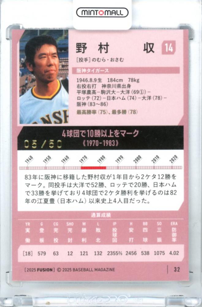 2025 BBM FUSION 野村収 #32 記録の殿堂 ホロ箔サイン版【05/50】 阪神