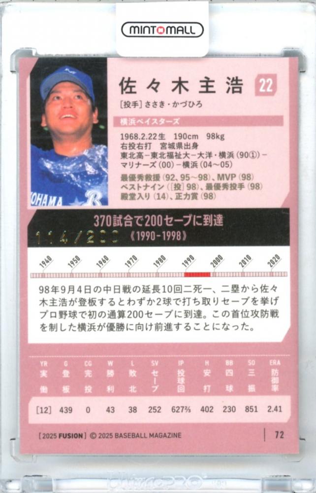 2025 BBM FUSION 佐々木主浩 #72 記録の殿堂 ヘアライン金紙版【114/200】 横浜