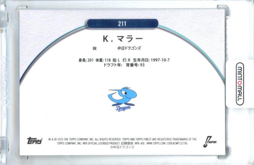2025 TOPPS NPB FINEST K.マラー #211 Base Orange Refractor Parallel【07/25】 中日