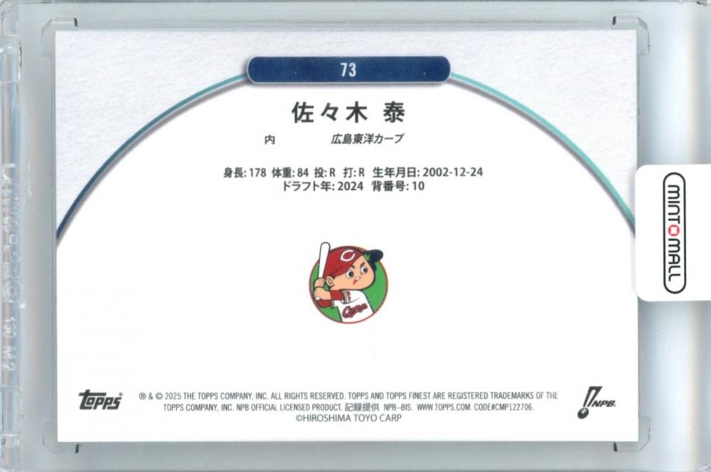 2025 TOPPS NPB FINEST 佐々木泰 #73 Base Purple Refractor Parallel【064/250】 広島