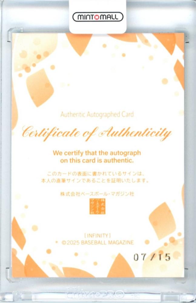 BBM インフィニティ 2025 田中佑美 直筆サインカード【37/44】