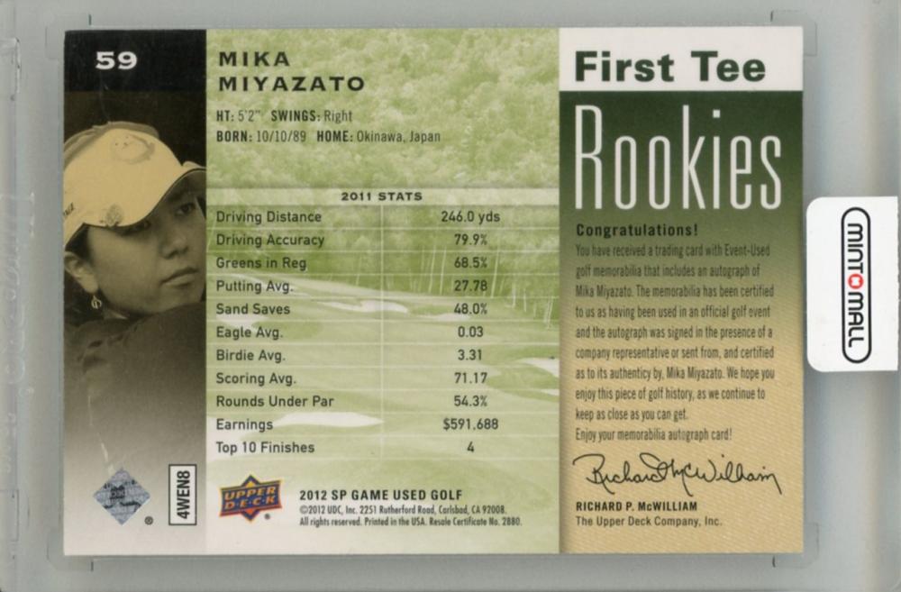 2012 UPPER DECK SP Game Used Mika Miyazato Autograph #59 Shirt RC【026/199】